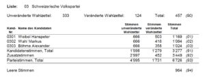 Die Anzahl der Zusatzstimmen (Panaschierstimmen) ist höher als die eigentlichen Kandidatenstimmen.